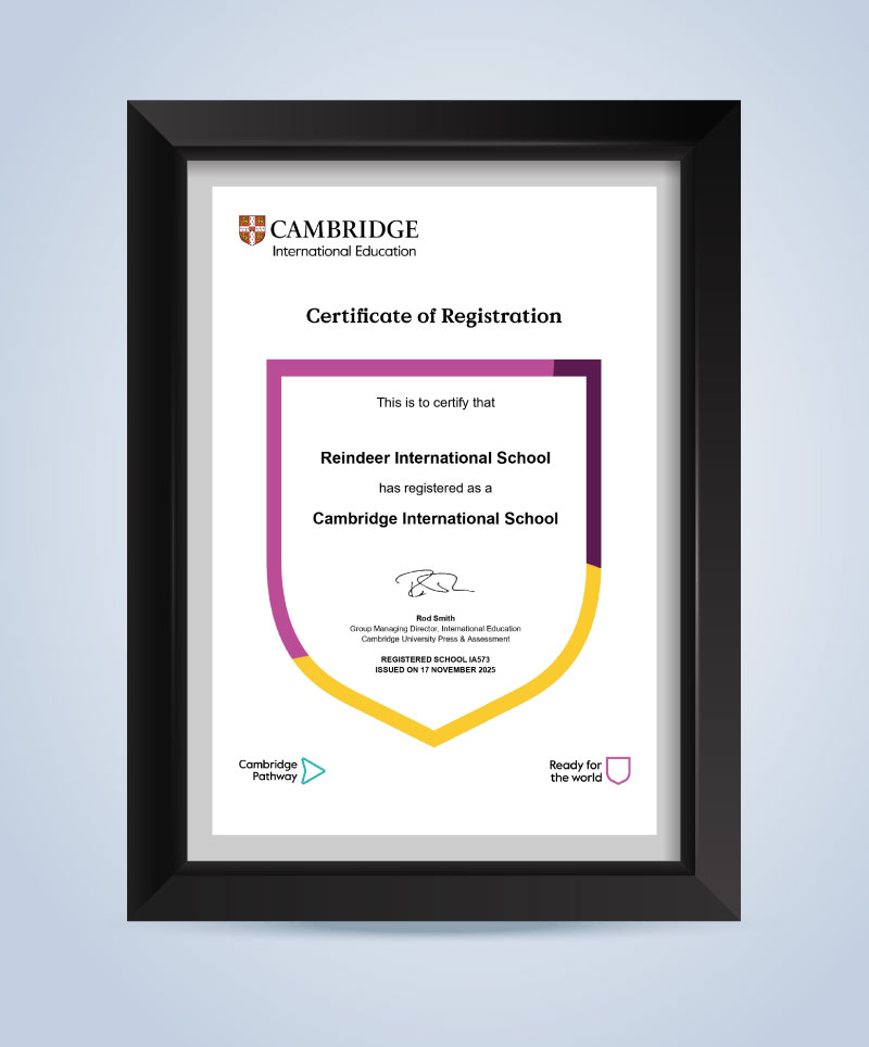 Reindeer International School, Yercaud, is approved by Cambridge International Education (Cambridge Board), United Kingdom, for starting ‘Cambridge Primary’ and ‘Cambridge Lower Secondary’ from the academic year 2026-27 onwards. Our school is in the process of getting approvals for Cambridge Upper Level and Cambridge Advanced Level from Cambridge International Education, UK.